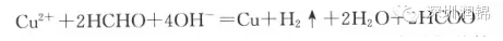 化學(xué)鍍銅也是自催化還原反應(yīng),以甲醛 為還原劑,溶液的pH值在11以上,可獲得足夠厚度的銅層。在化學(xué)鍍銅過程中銅的還原反應(yīng)如下: